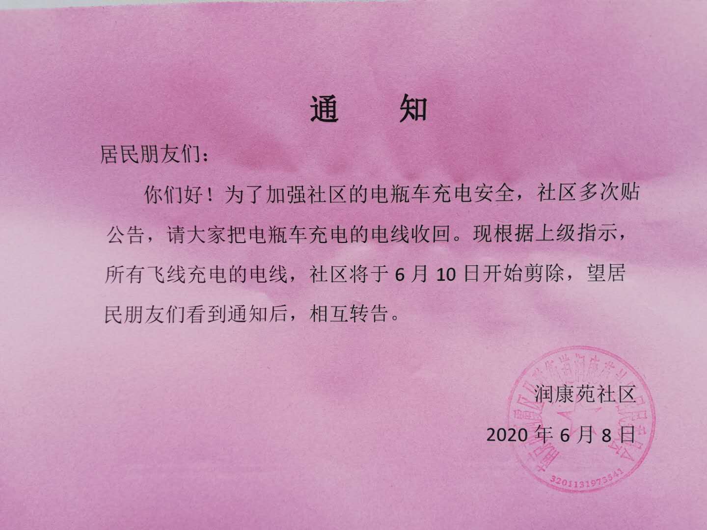 随着气温的升高,电瓶车充电起火事故也随之增加,再加上不良充电习惯,比如飞线充电,电瓶车充电安全隐患也骤然上升。南京各个小区在相关单位的指导下,也加紧了小区楼宇“飞线充电”的整治工作,要求大家在小区提供的