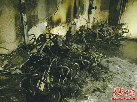 2015年1月12日凌晨,在长沙西子花苑小区地下停车场,疑因电瓶车超负荷在自动充电桩充电引发大火,12辆电瓶车全被烧成了一堆废铁,周围的小轿车也被大火炙烤遭受不同程度的损失,却无人买单。
